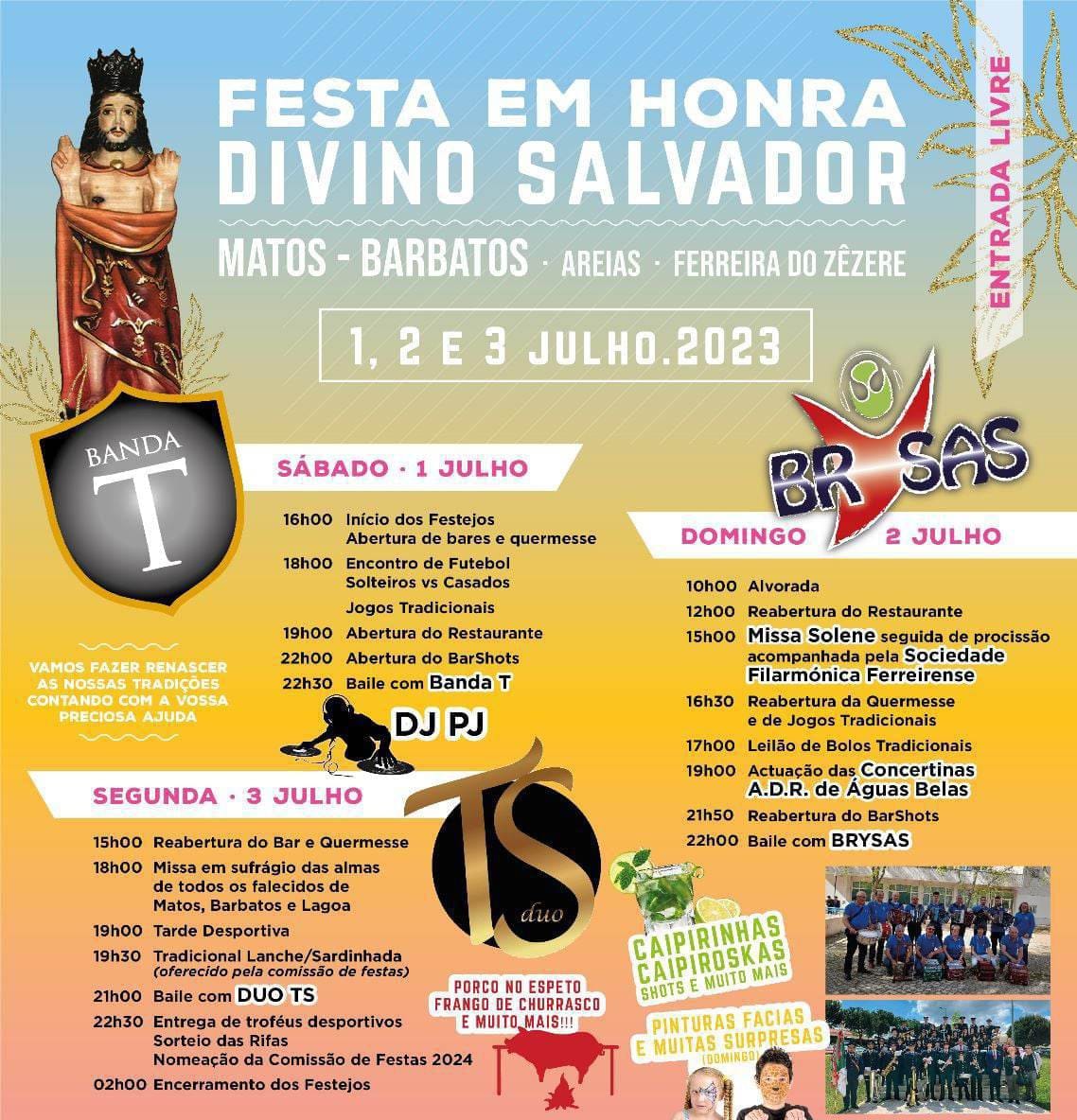 A UFAP informa que nos dias 1, 2 e 3 de julho de 2023, irá decorrer mais uma grande festa em Matos - Barbatos, em Honra do Divino Salvador, conforme programa anexo.
