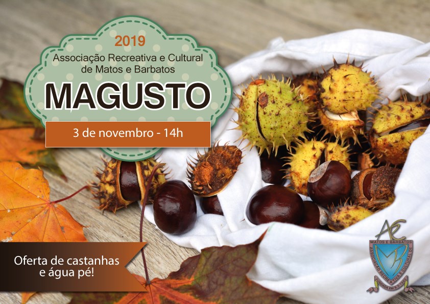 Conforme solicitado, a UFAP informa que no dia 03 de novembro de 2019, a Associação Cultural e Recreativa de Matos e Barbatos, vai realizar na sua sede mais um magusto, com início pelas 14:00h. As castanhas e a água-pé ficam a cargo da associação.